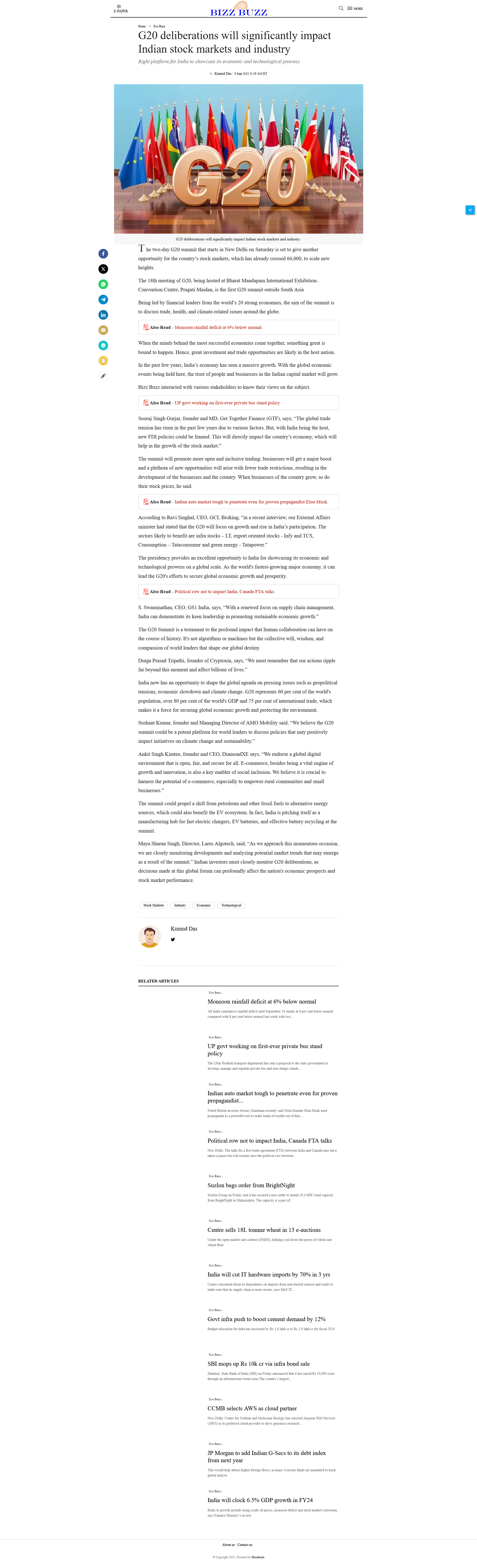 G20 deliberations will significantly impact Indian stock markets and industry
