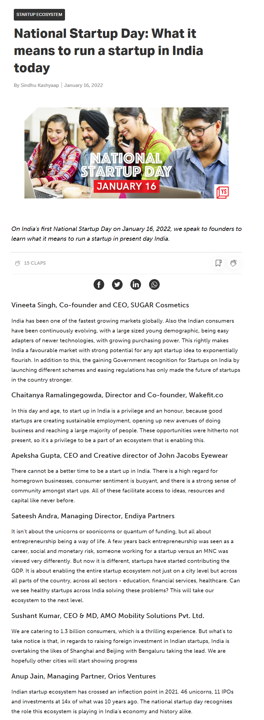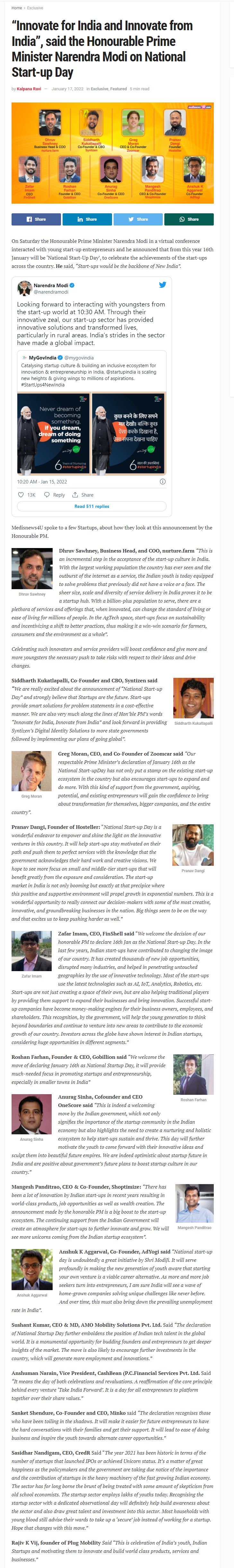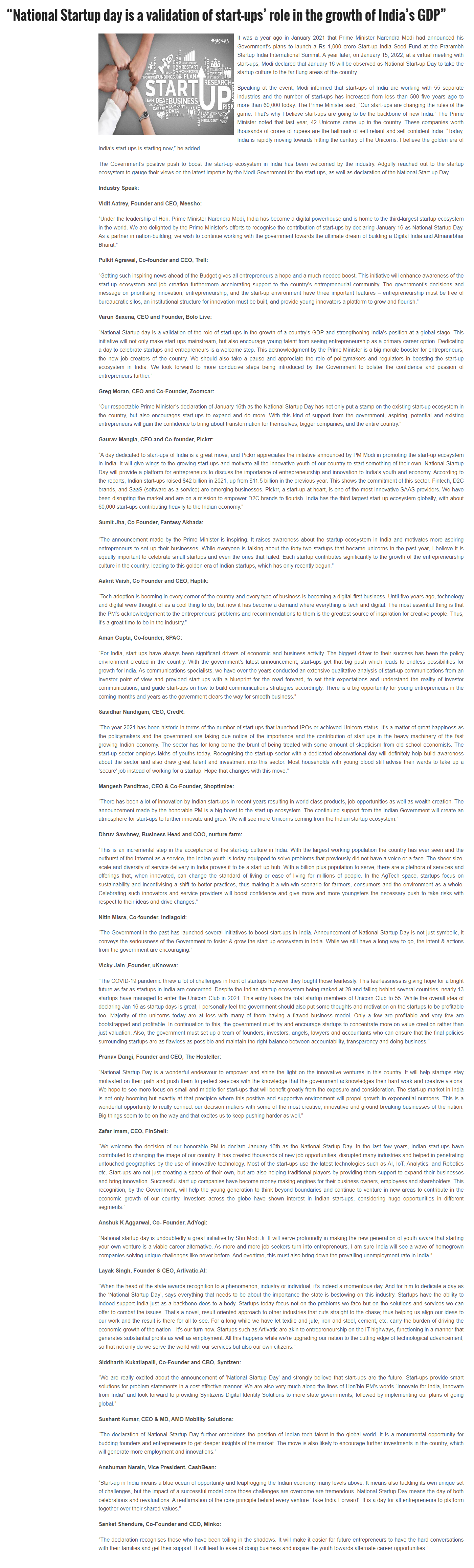 “National Startup day is a validation of start-ups’ role in the growth of India’s GDP”