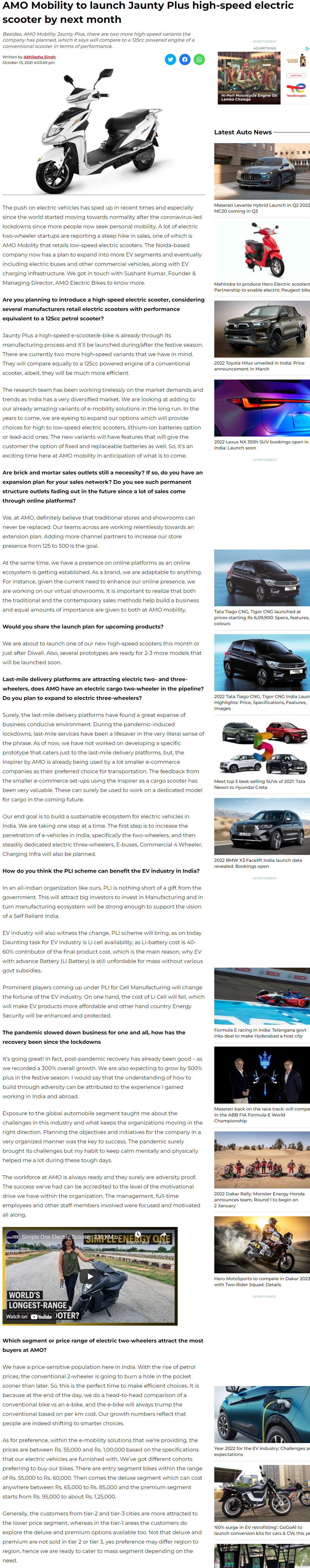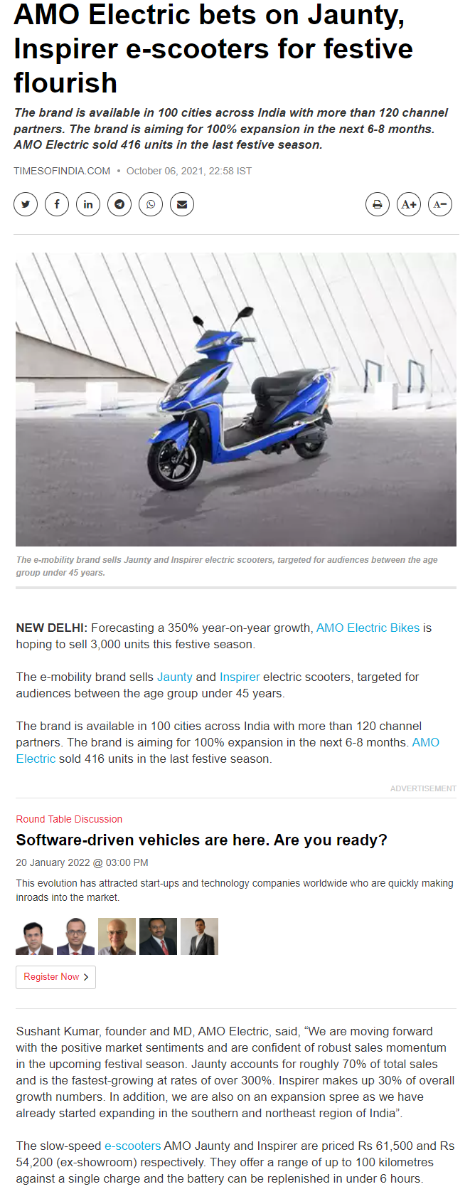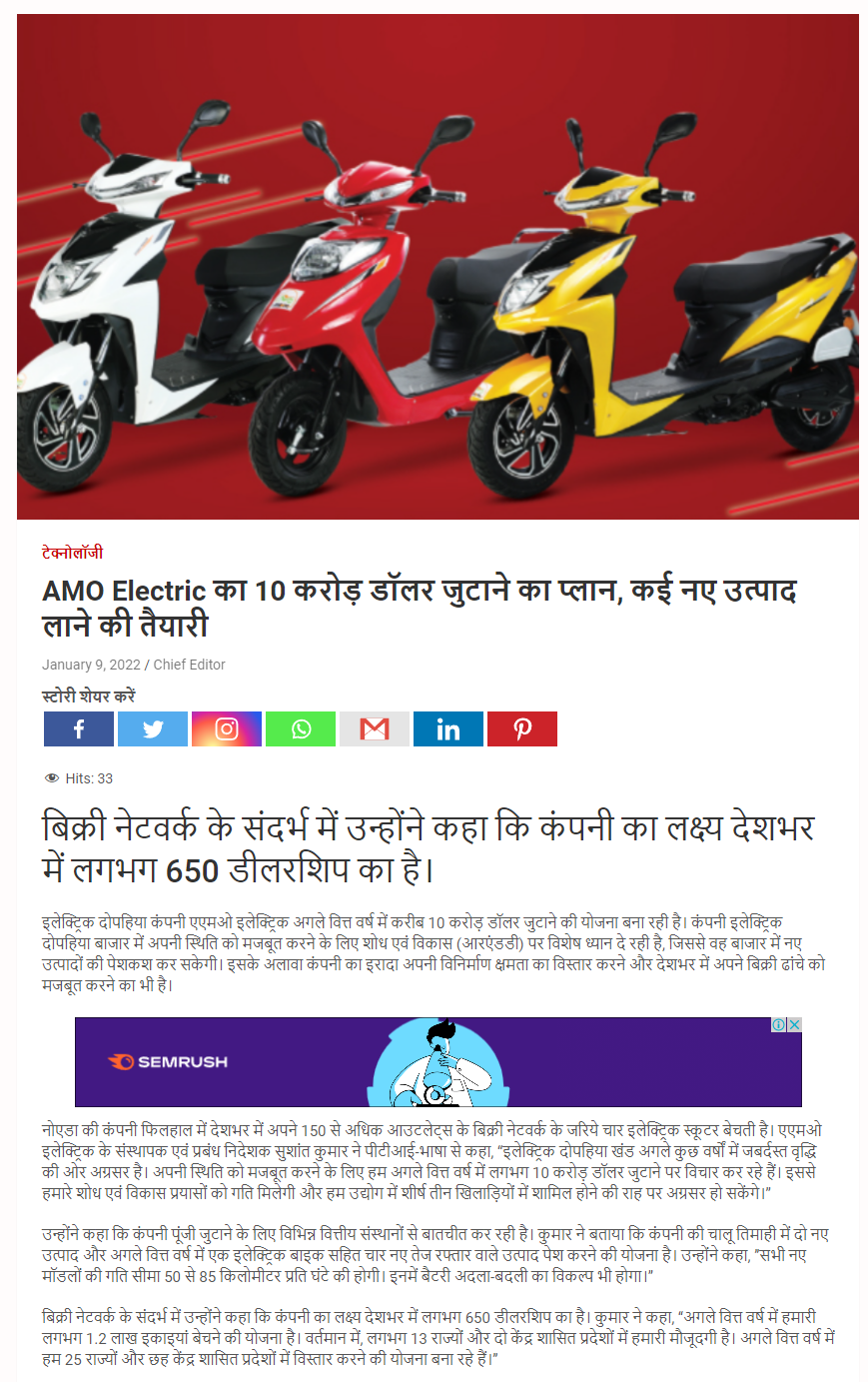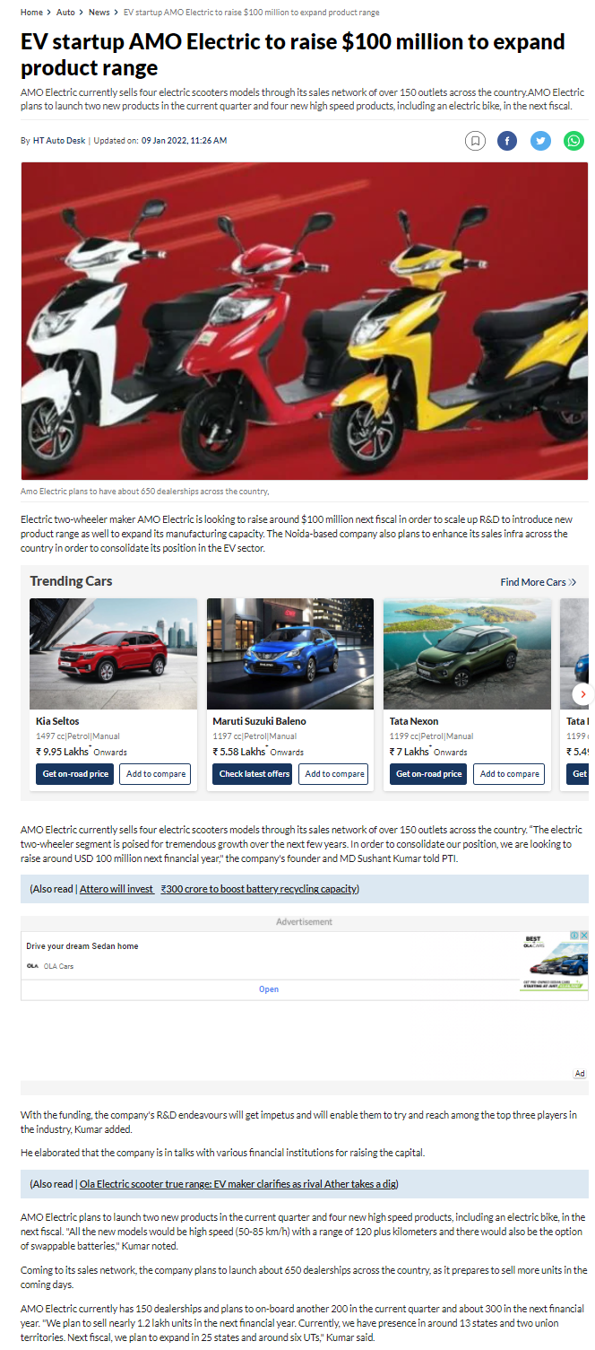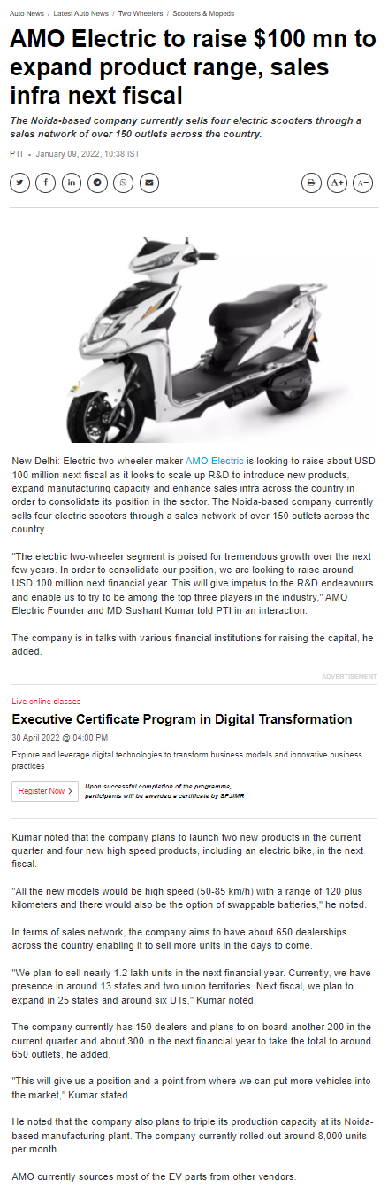 AMO aiming for a top three spot in India: Three electric sco .. Read more