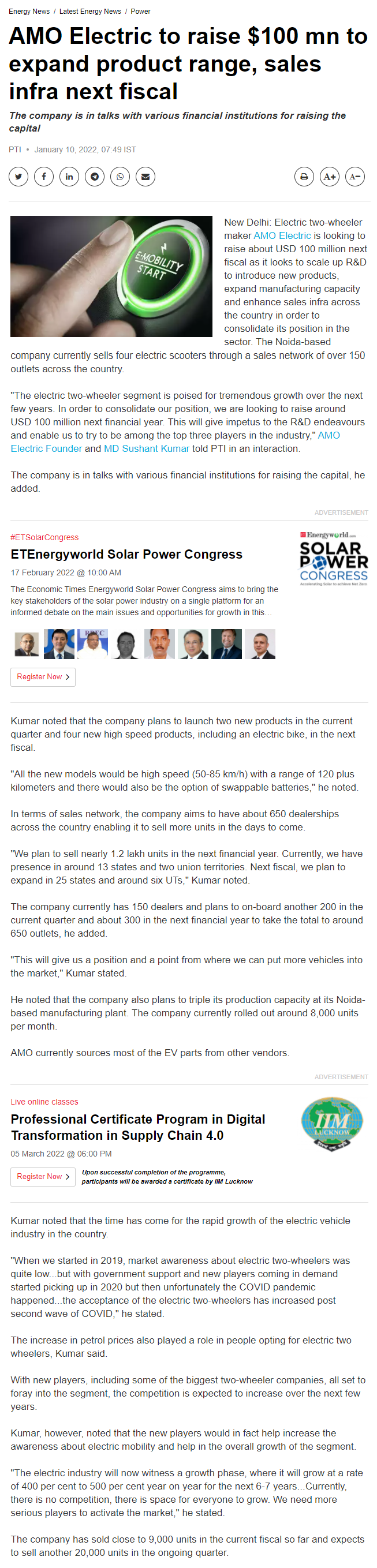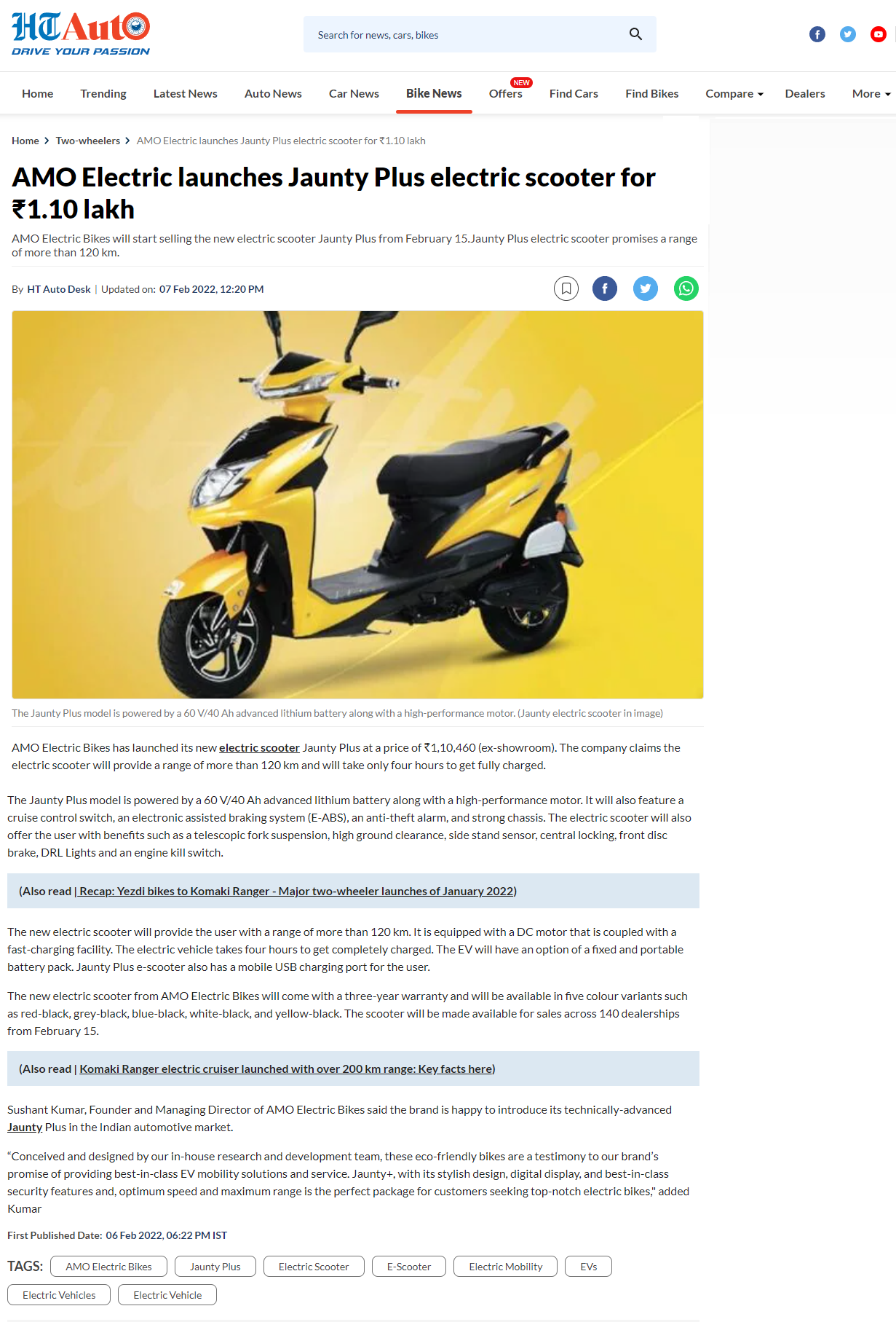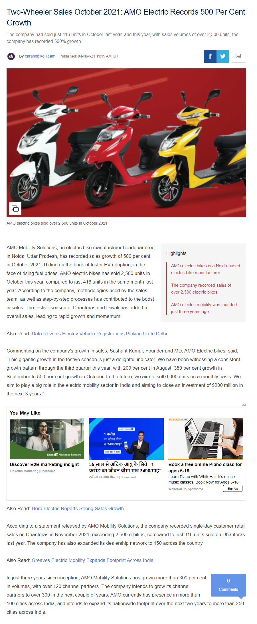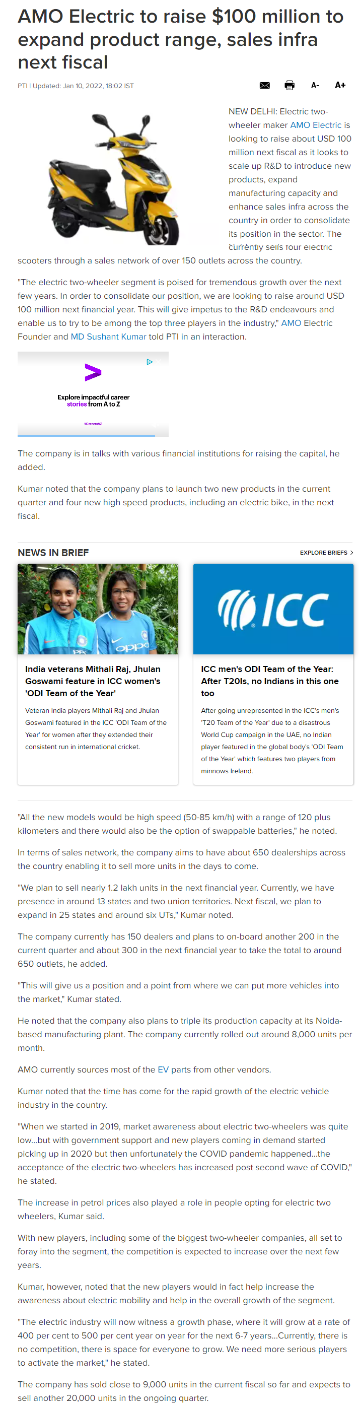 AMO aiming for a top three spot in India: Three electric sco .. Read more