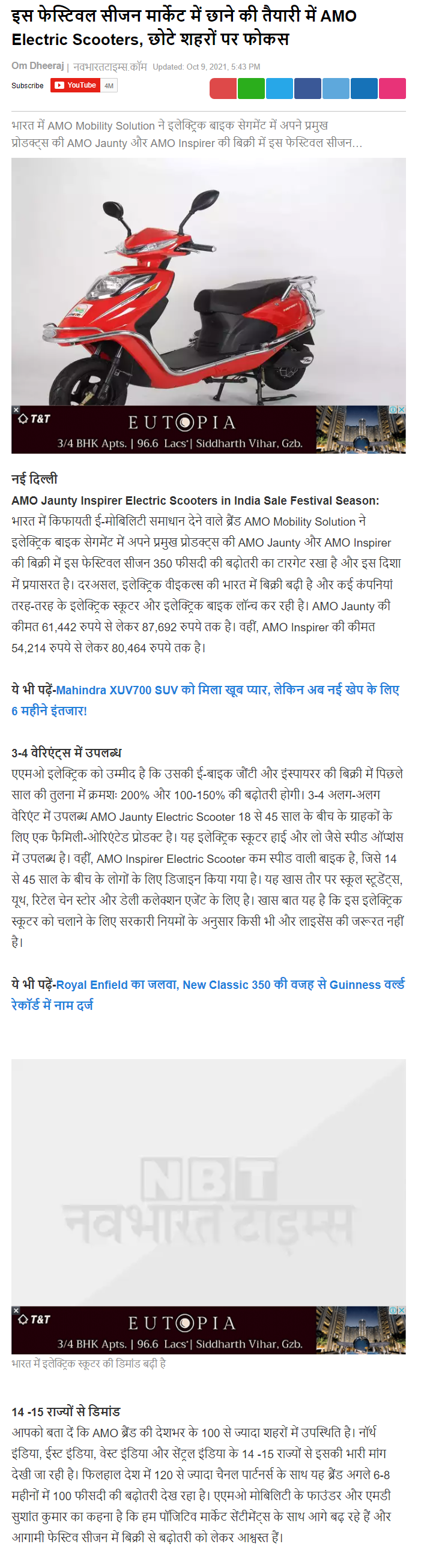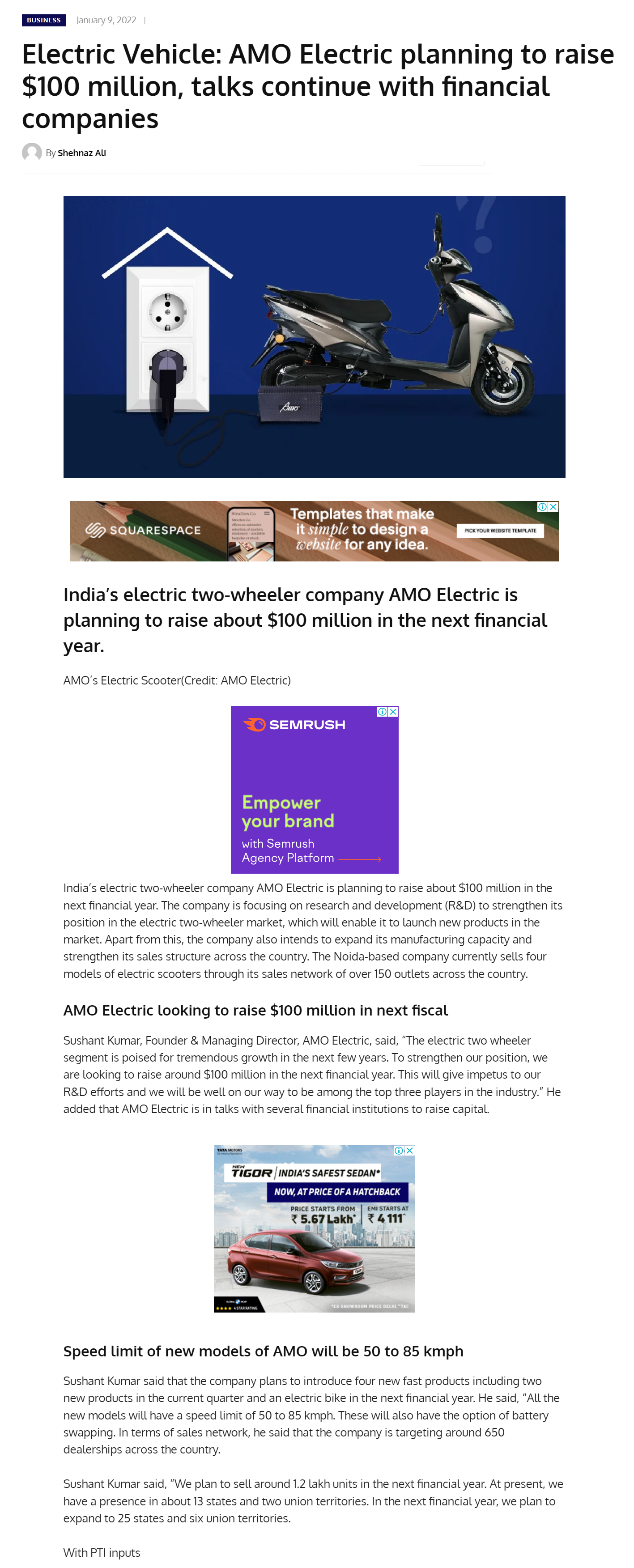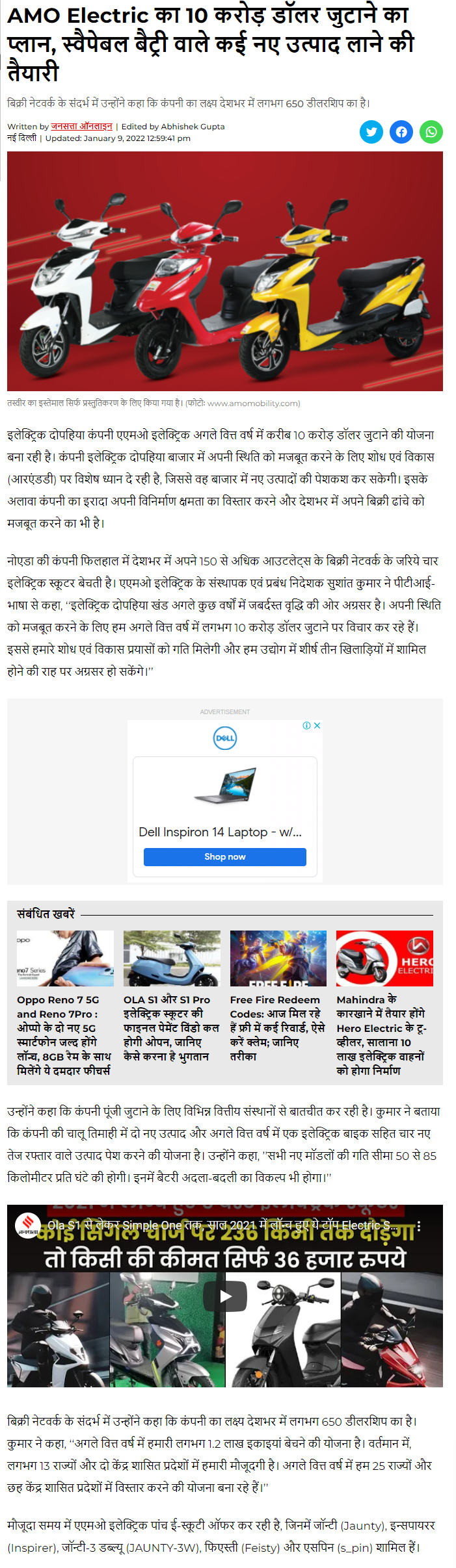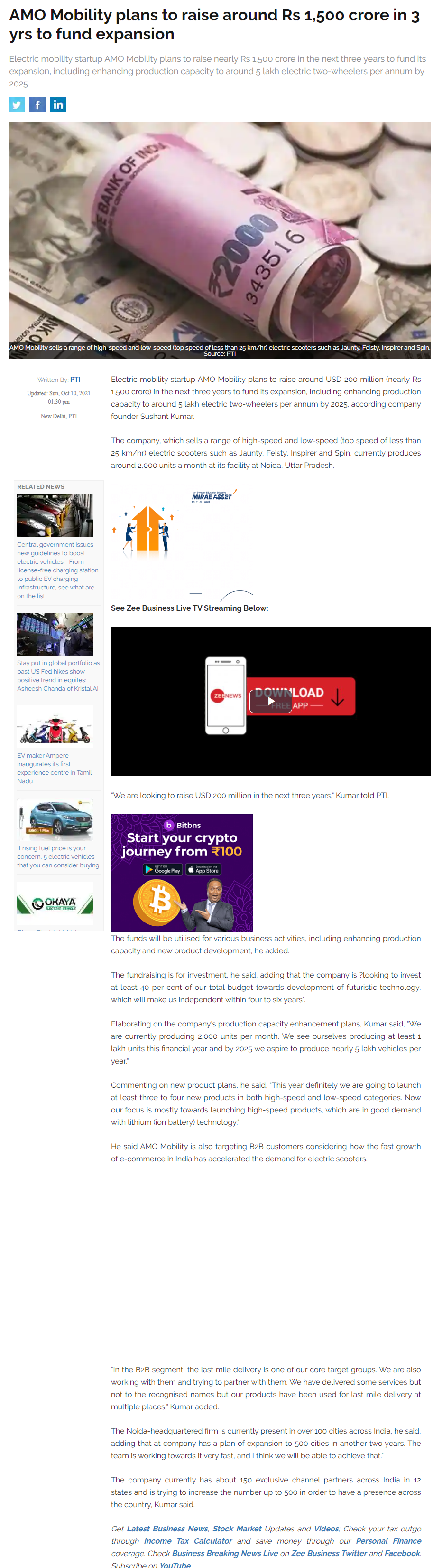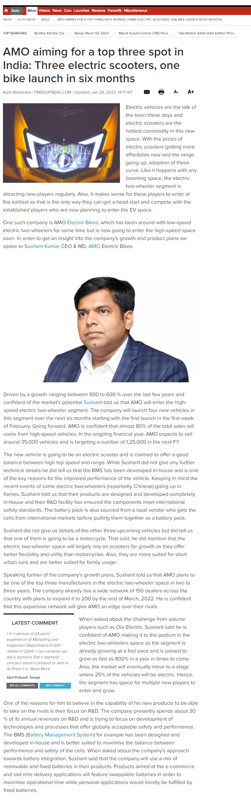 AMO aiming for a top three spot in India: Three electric sco .. Read more