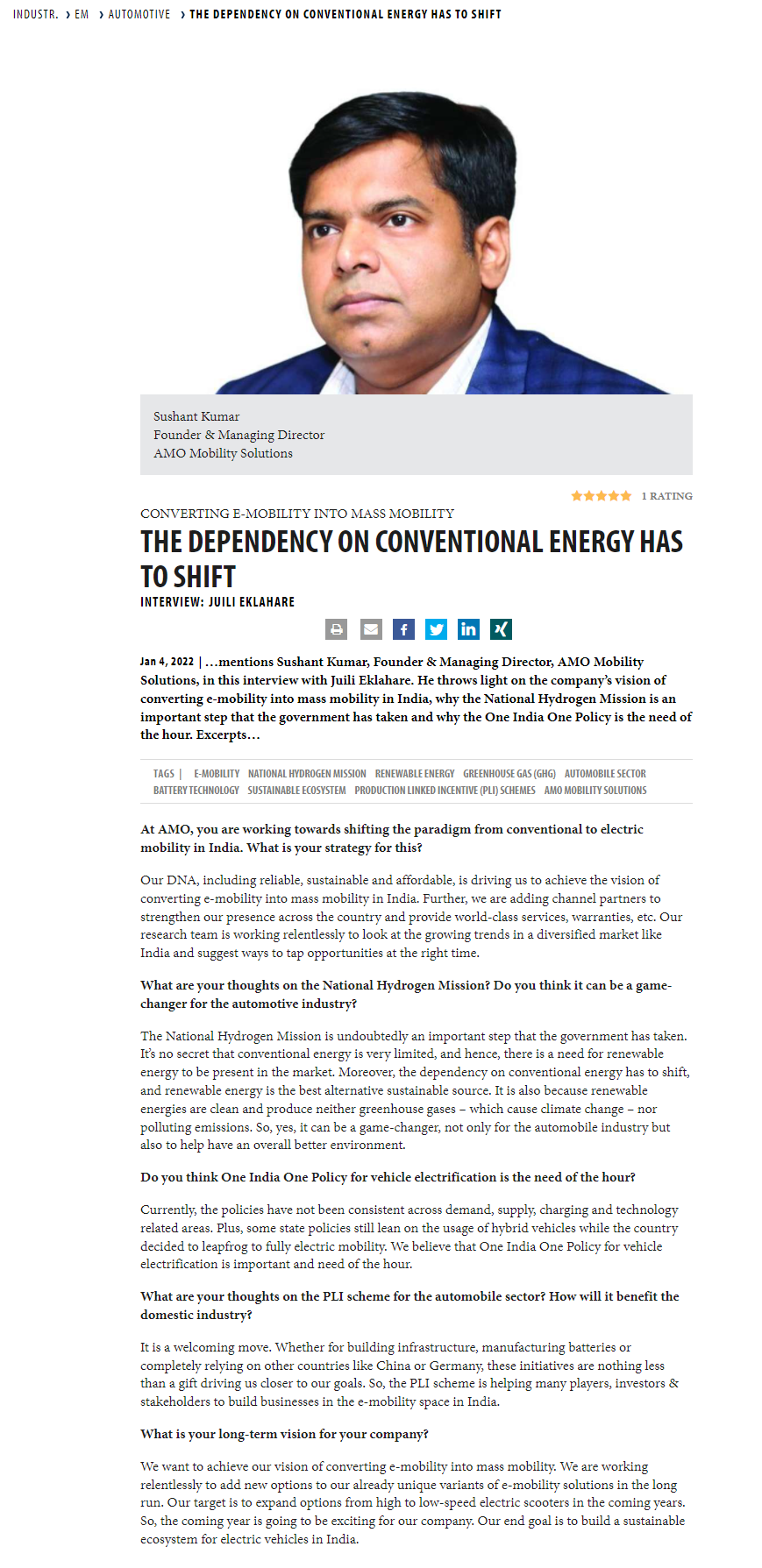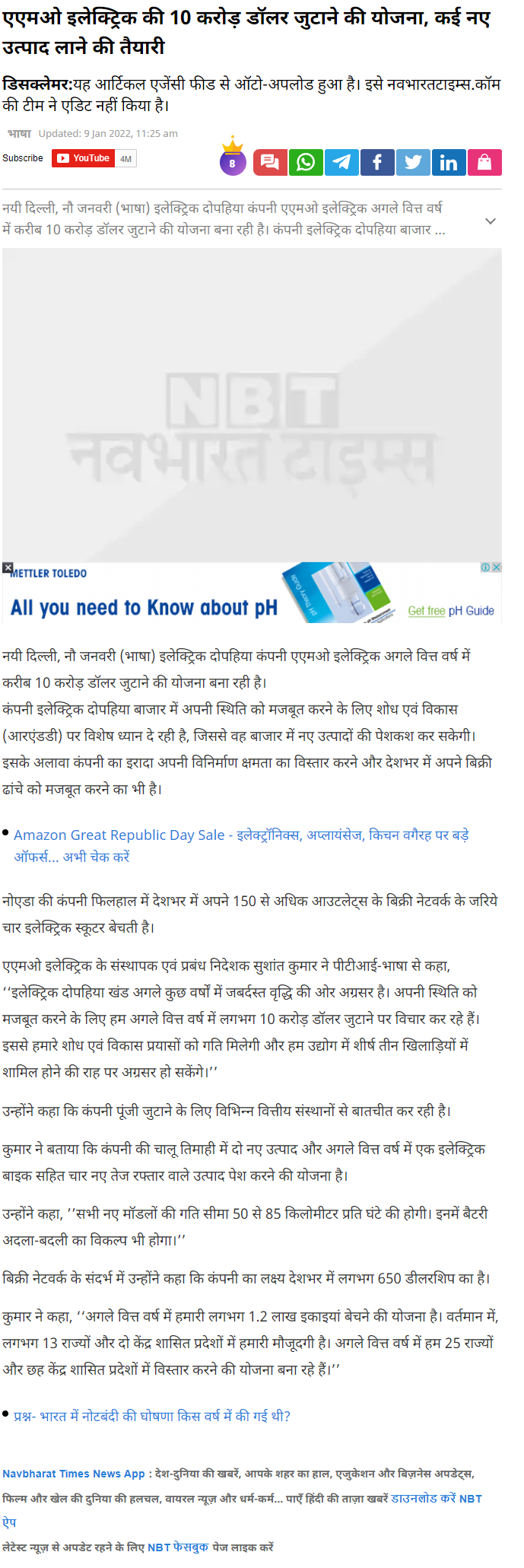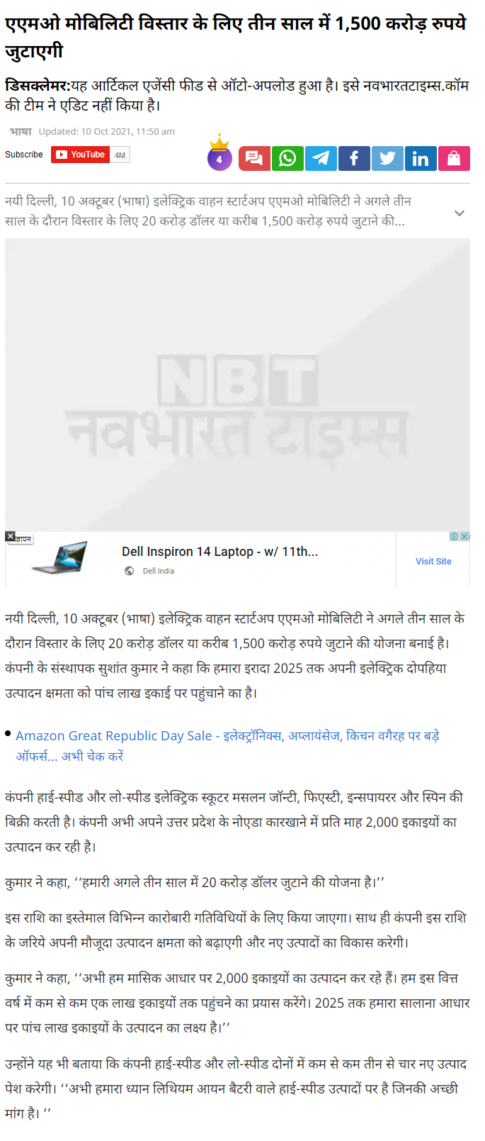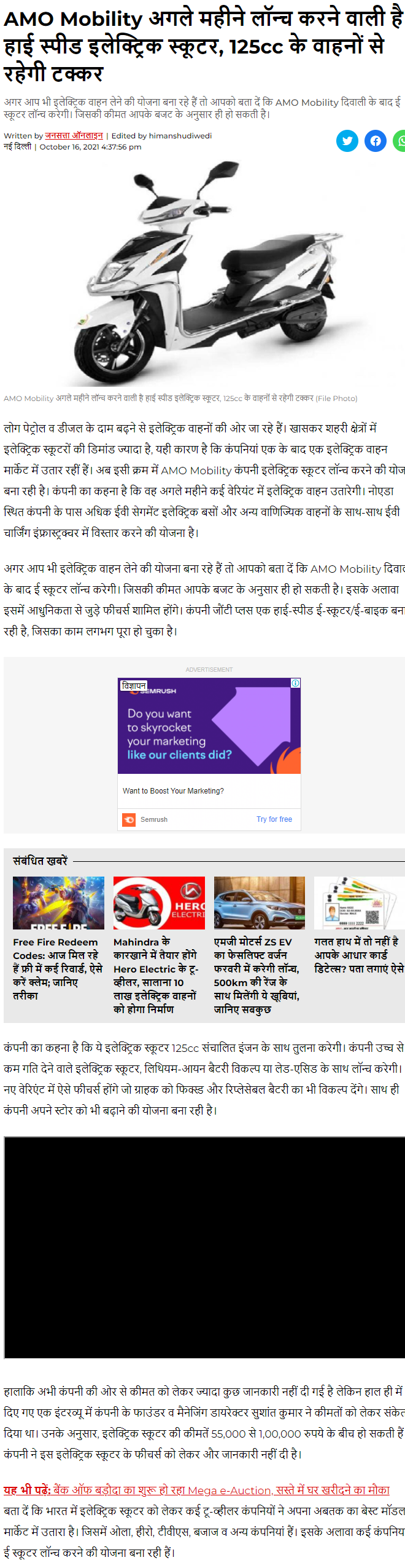 AMO aiming for a top three spot in India: Three electric sco .. Read more