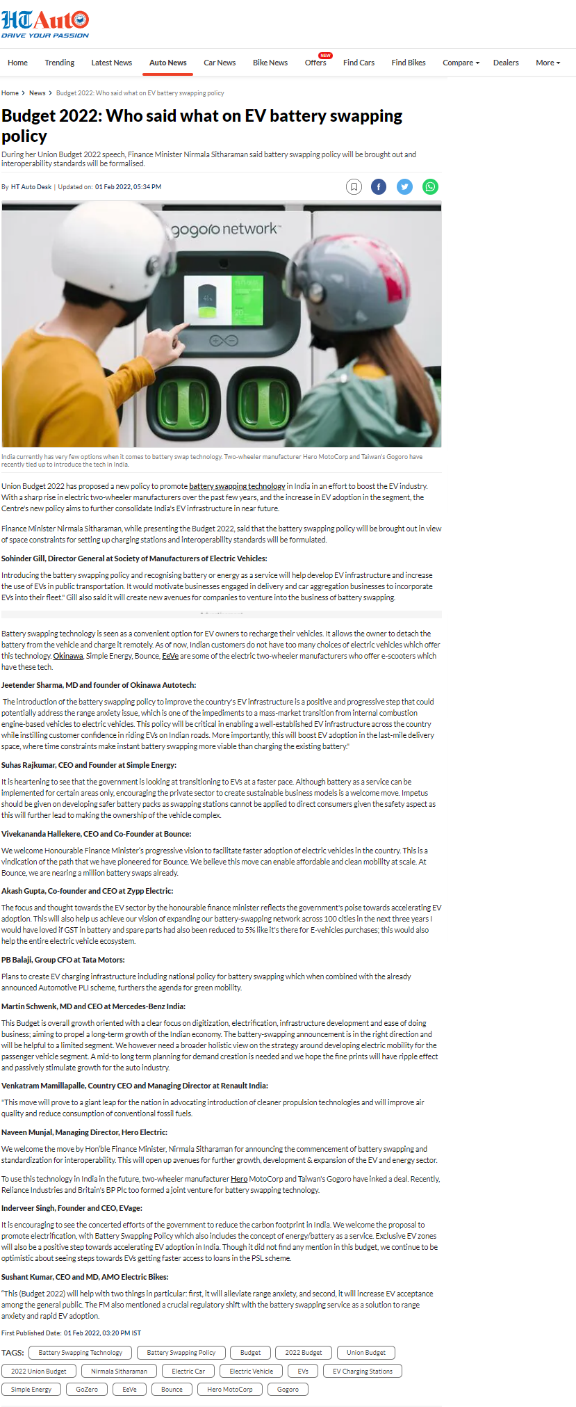 Budget 2022: Who said what on EV battery swapping policy