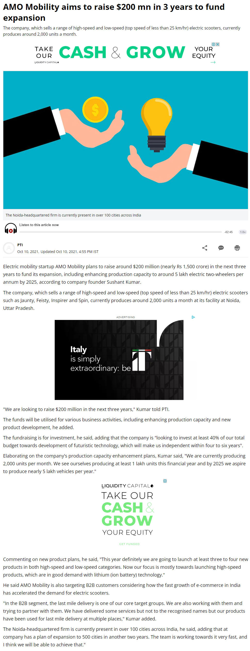 AMO Mobility plans to raise around $200 million in three years to fund expansion SECTIONS