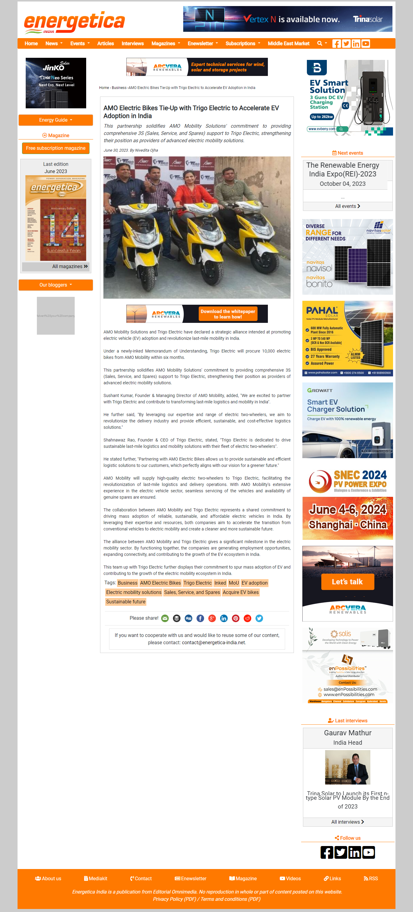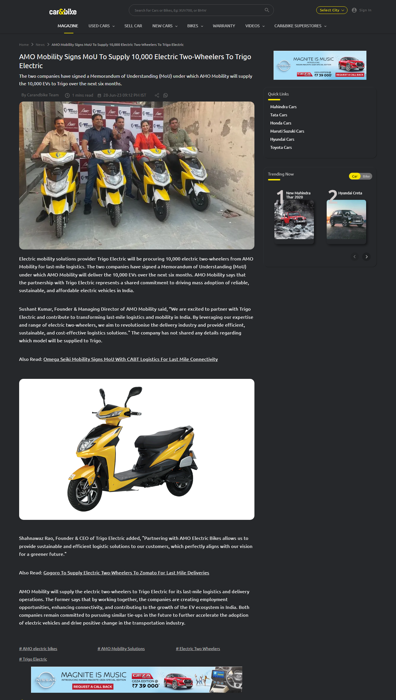 AMO Electric Bikes, Trigo Electric Partner To Drive EV Adoption In India