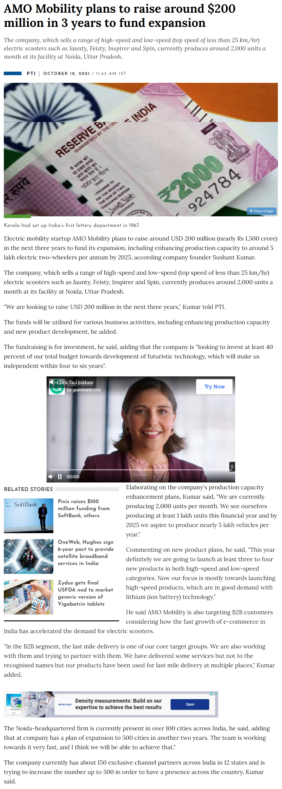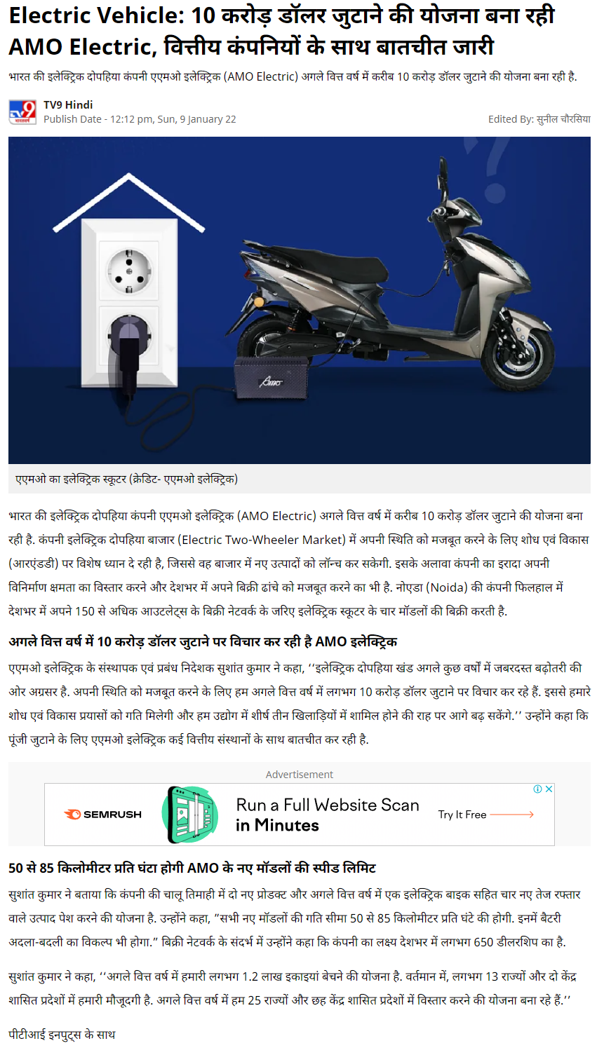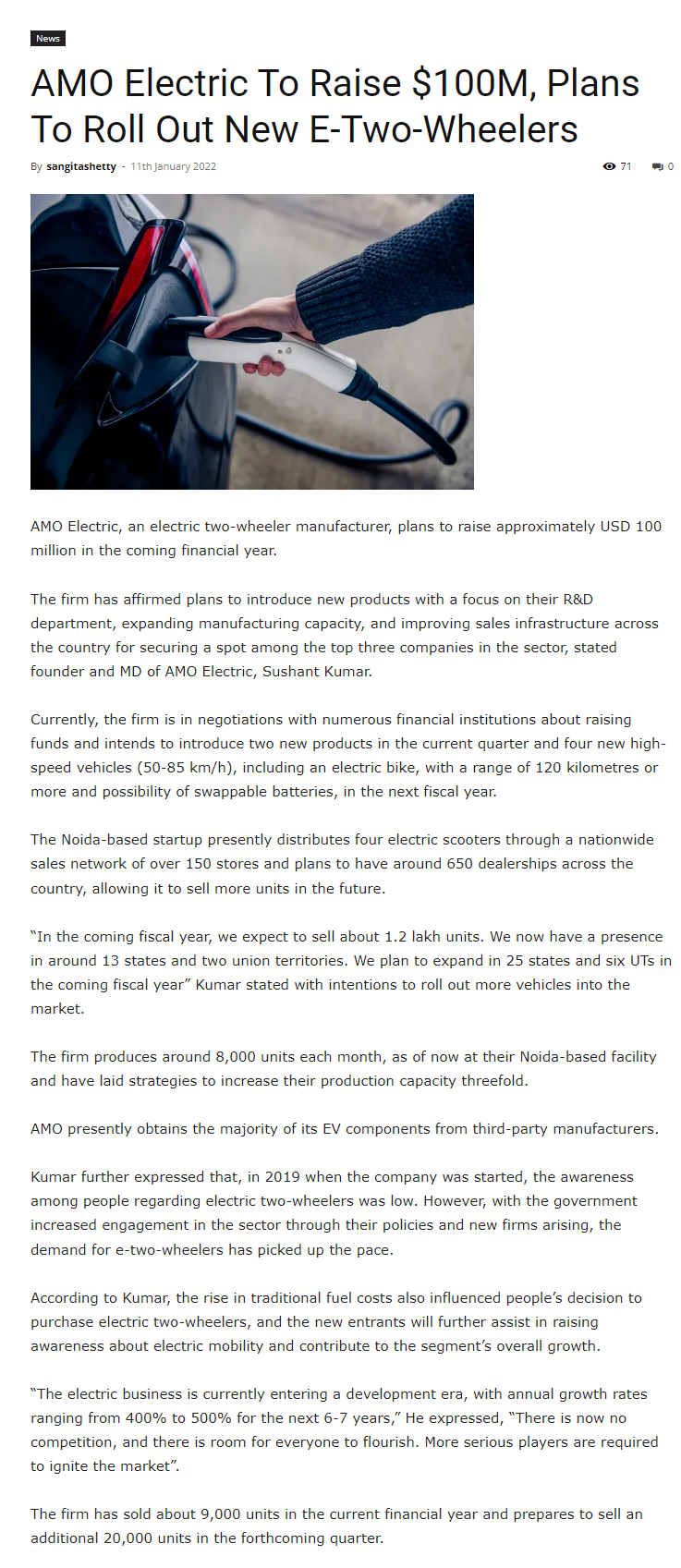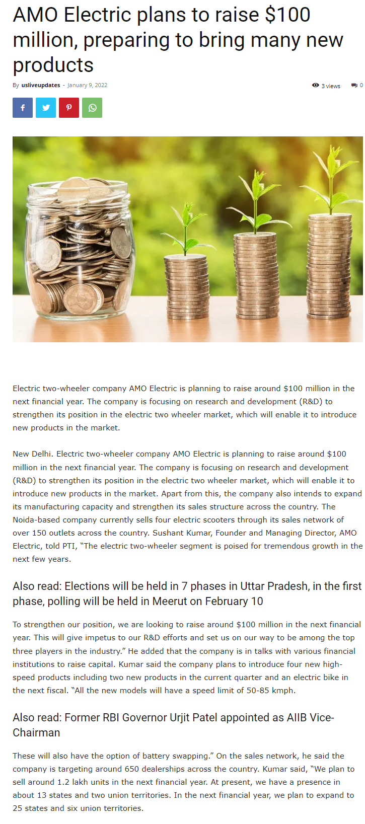 Amo Electric Plans To Raise $100 Million, Preparing To Bring Many New Products