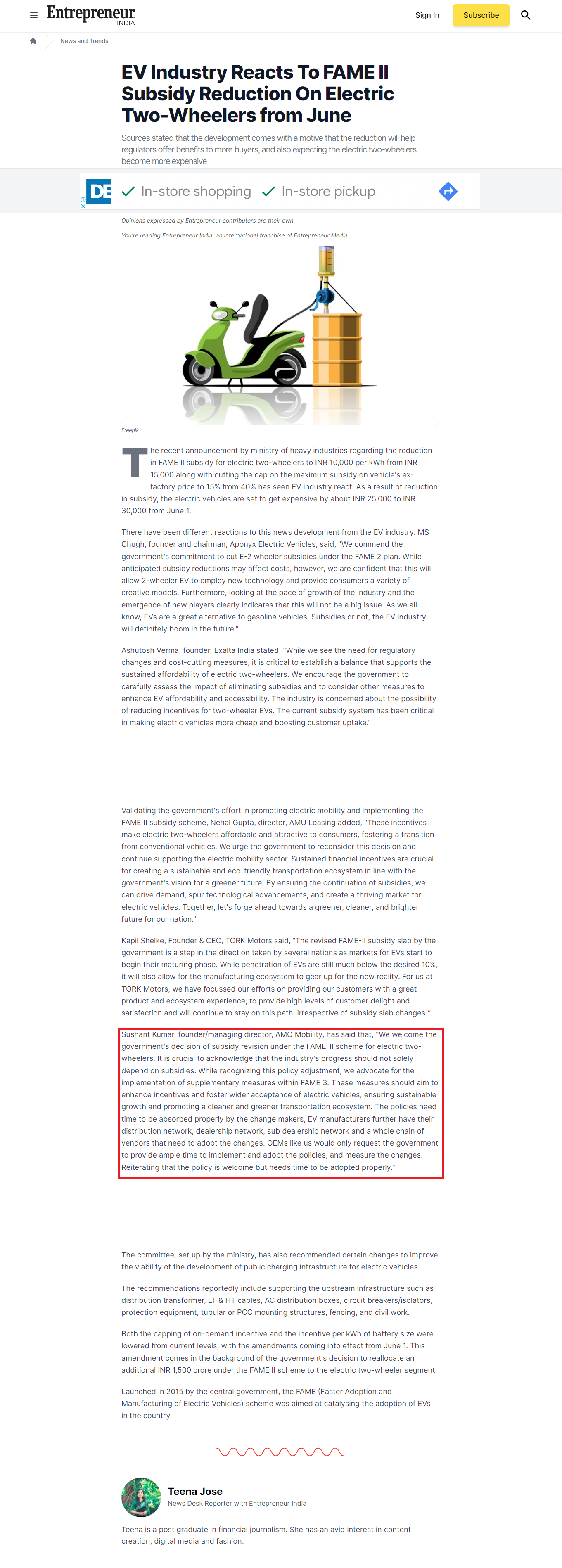 E-scooter firms differ on FAME II subsidy cut impact on sales
