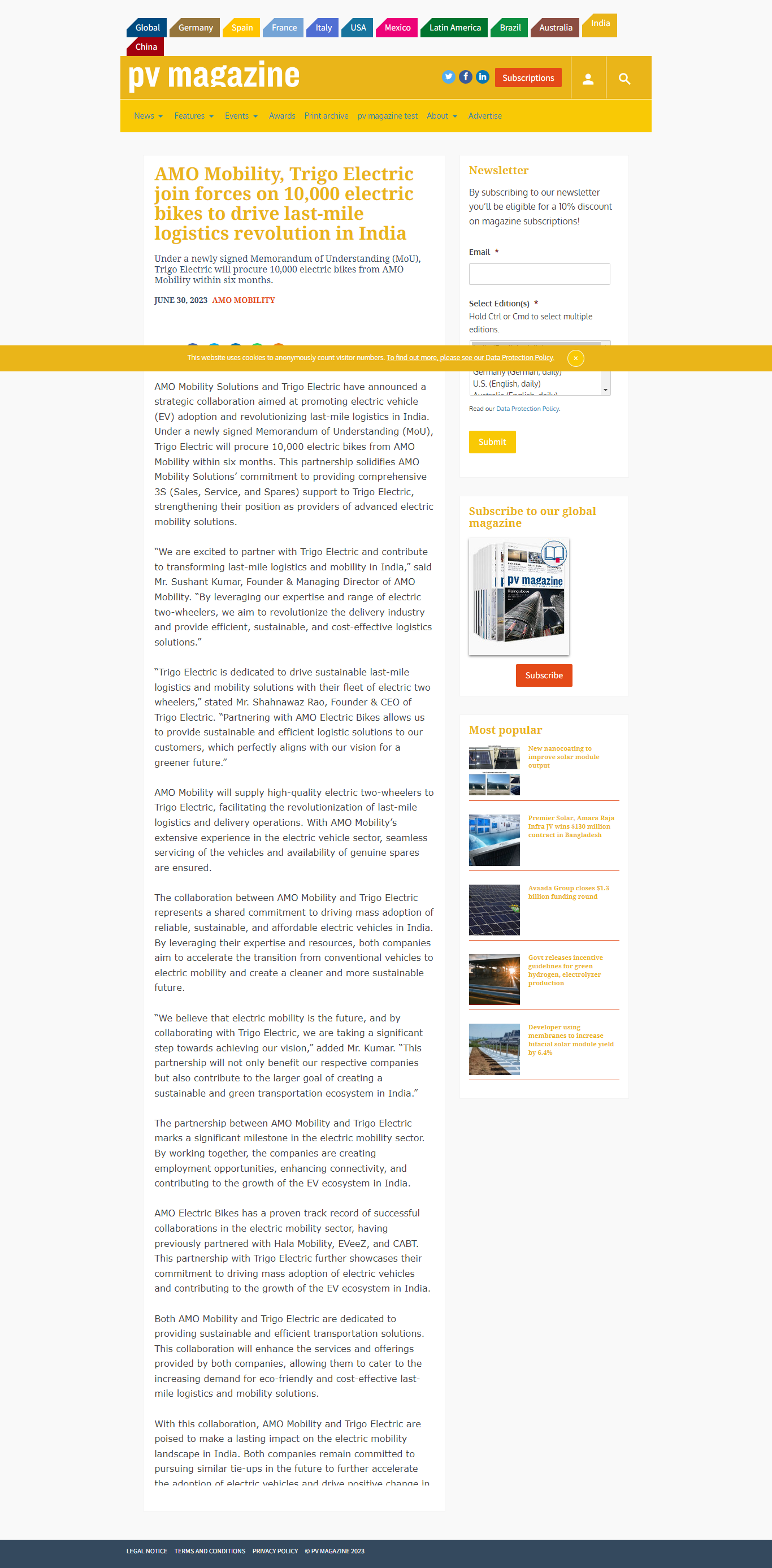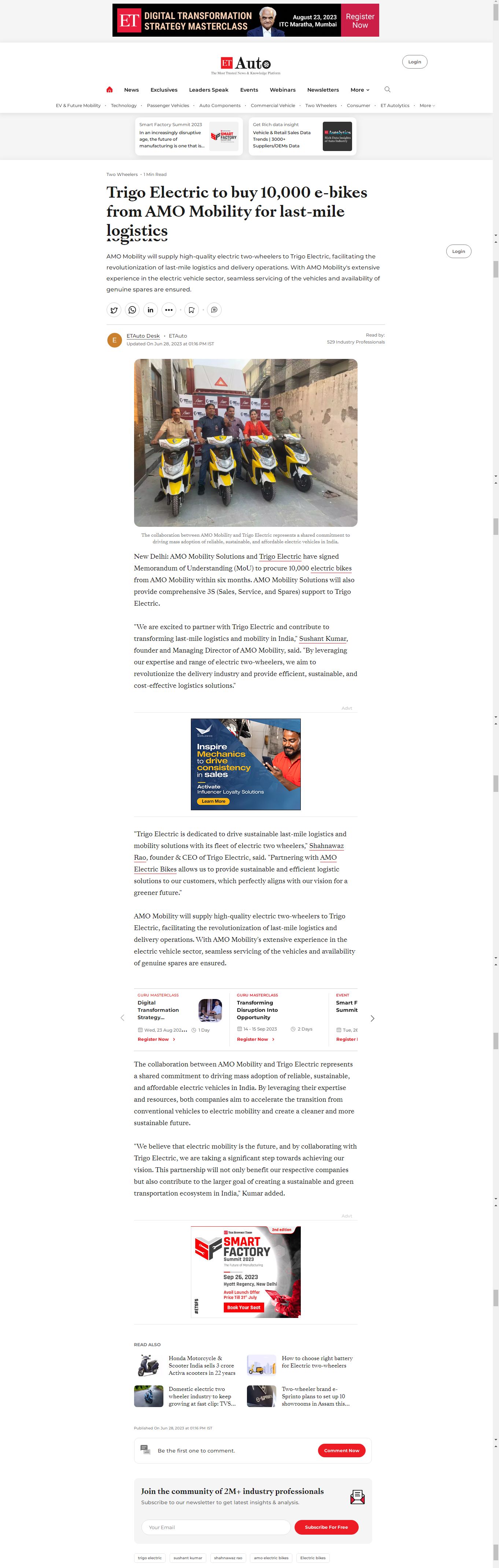 AMO Mobility, Trigo Electric join forces on 10,000 electric bikes to drive last-mile logistics revolution in India