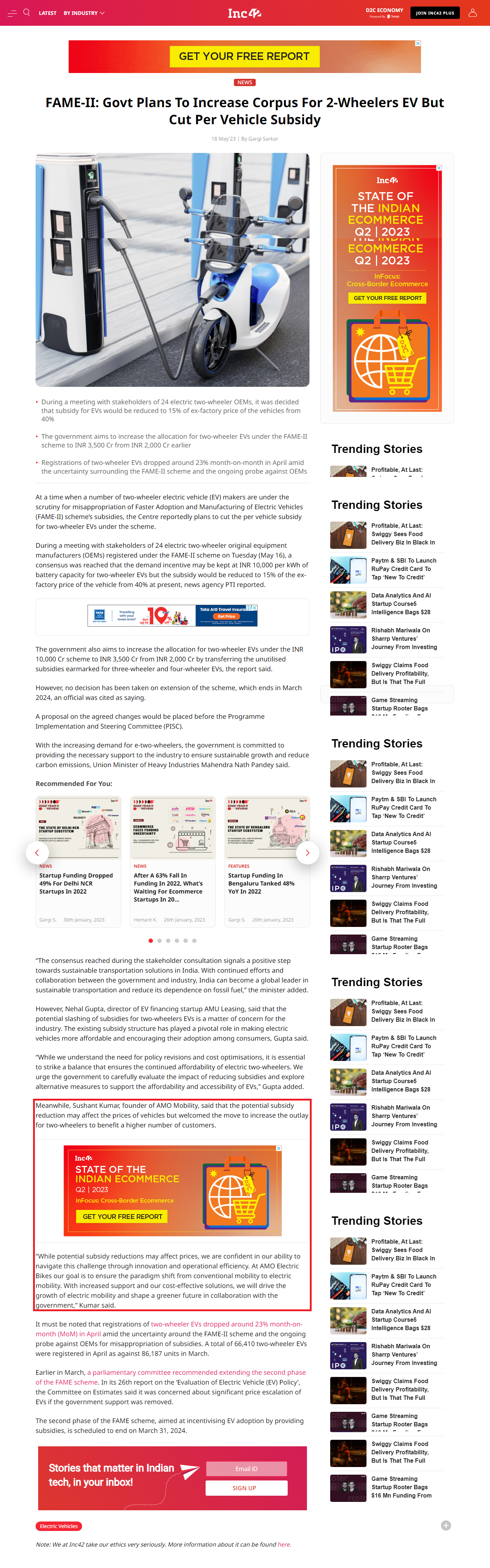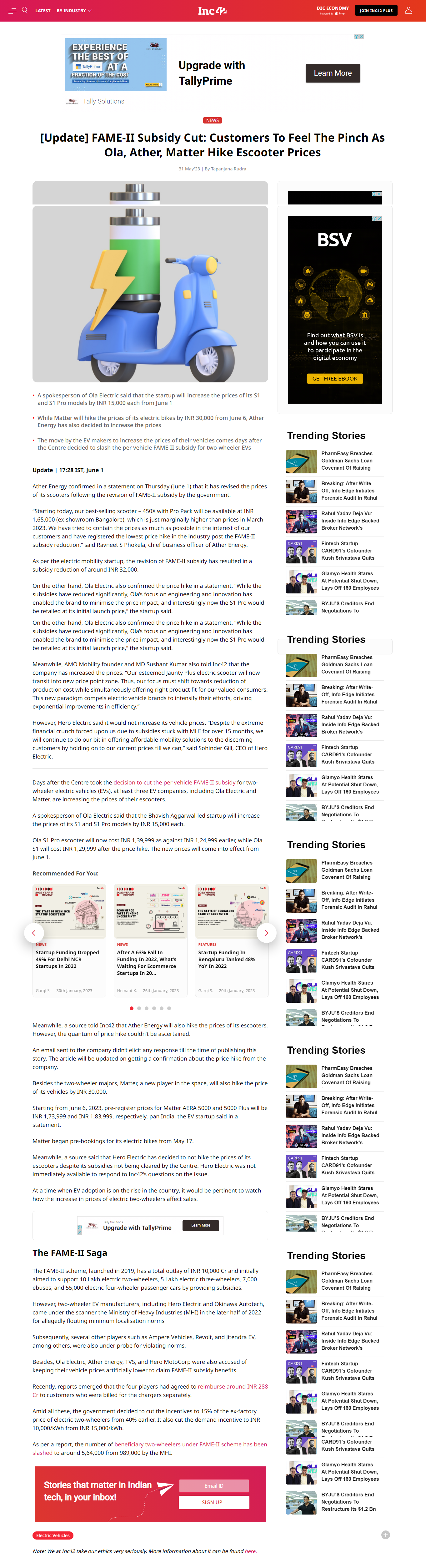 EV Industry Reacts To FAME II Subsidy Reduction On Electric Two-Wheelers from June