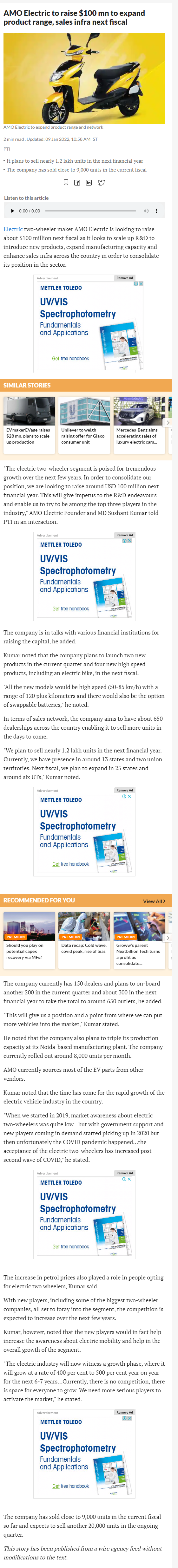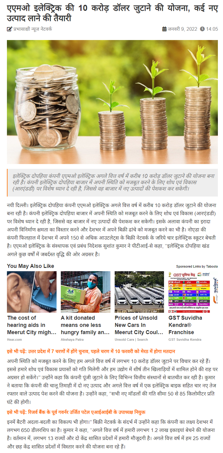 Amo electric to raise 100 mn to expand product range sales infra next fiscal