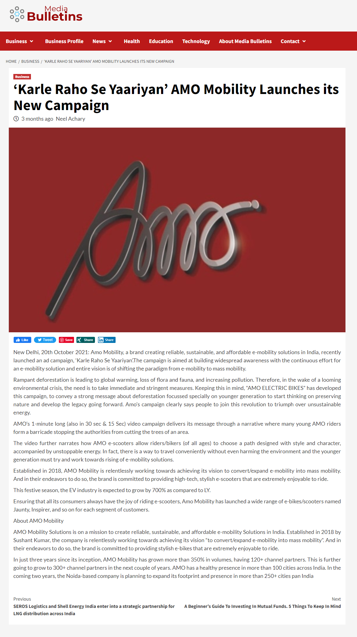 Amo mobility aims 350 percent growth in products sales in festive-2021