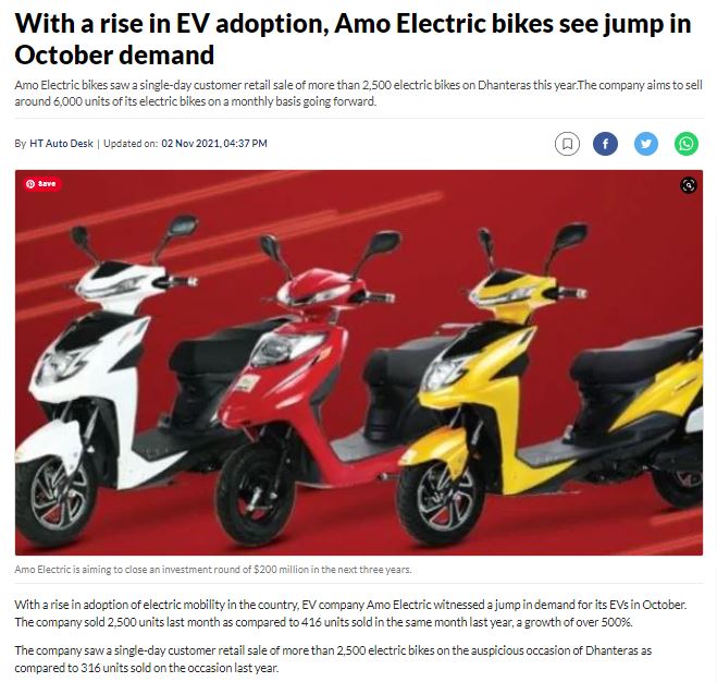 With a rise in EV adoption, Amo Electric bikes see jump in October demand